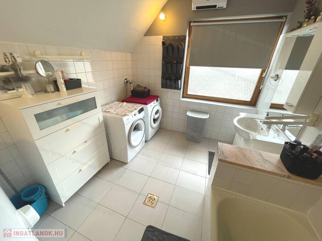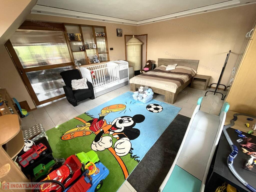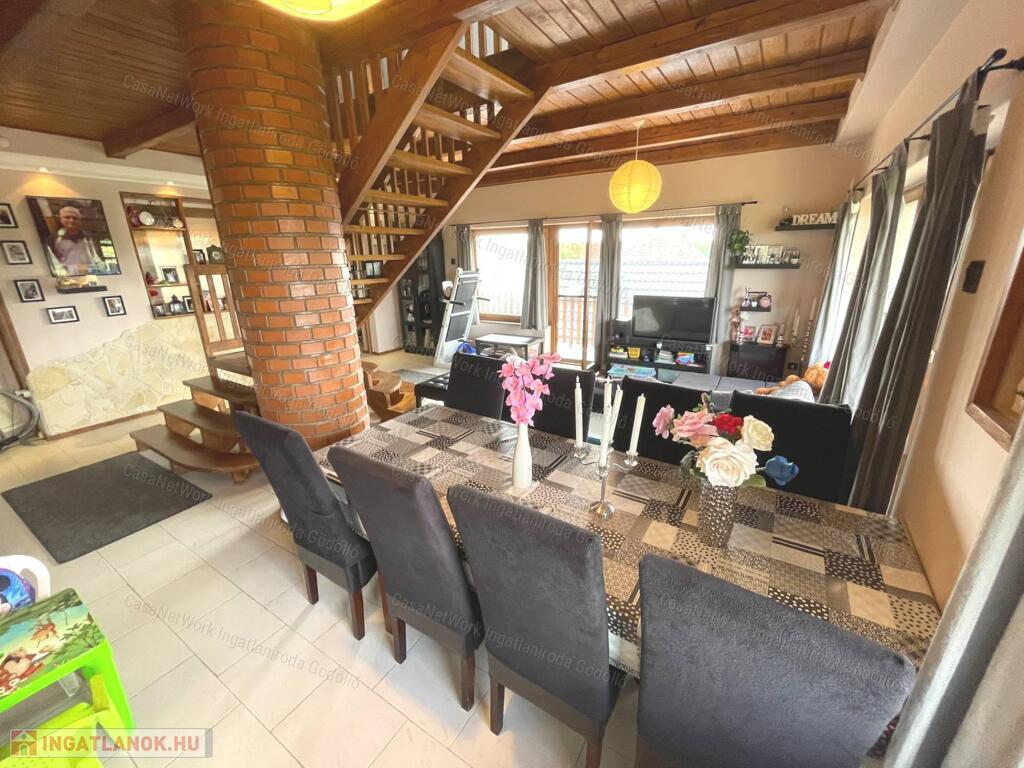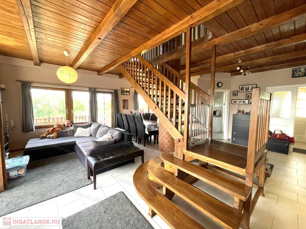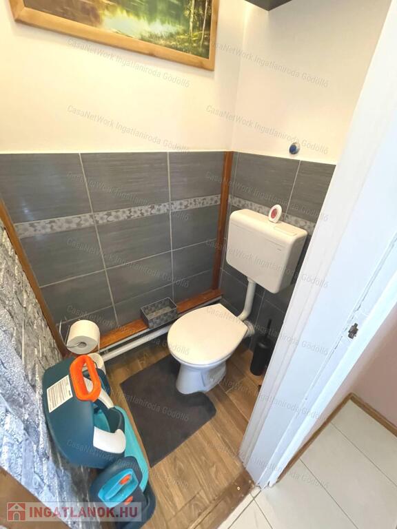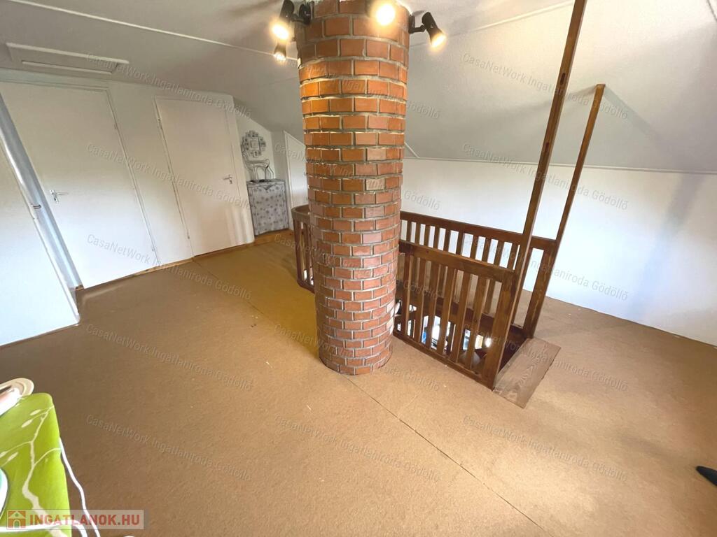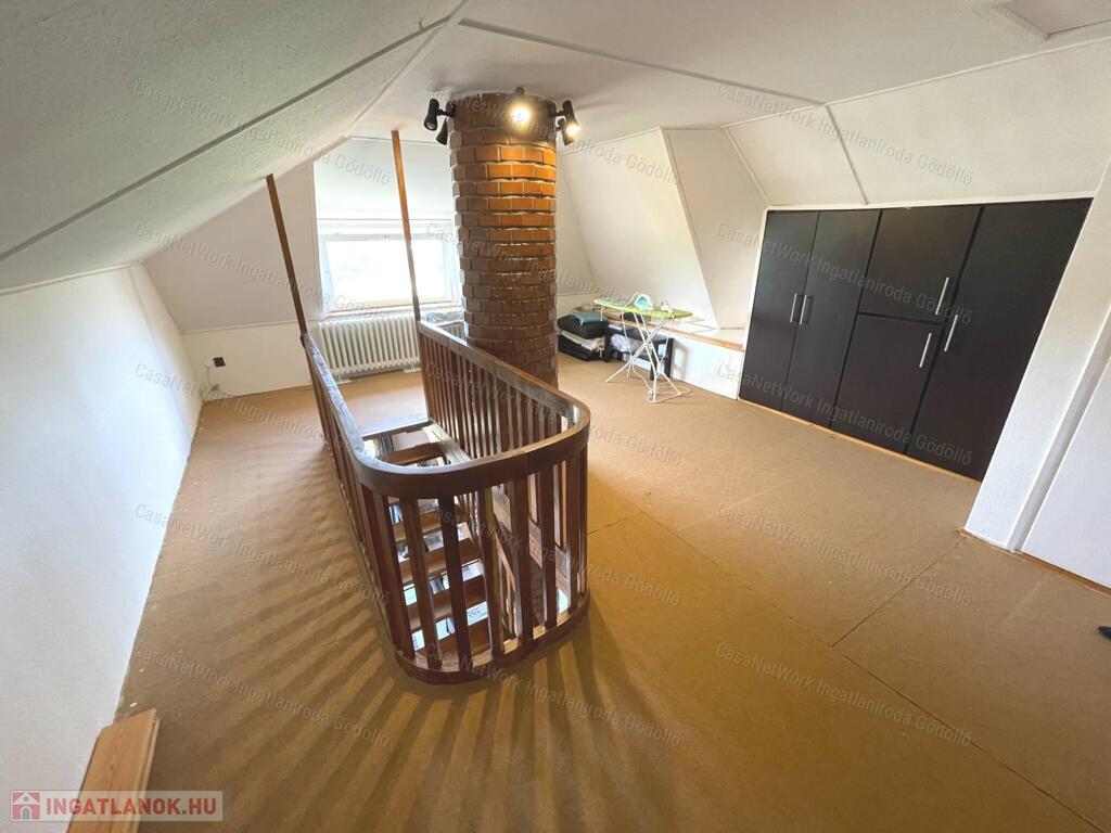 - tetőtéri szinten jelenleg egy nagy társalgó, valamint két félszoba van kialakítva, mely könnyen egy légtérré alakítható a gipszkarton elválasztásnak köszönhetően. Ezen a szinten található egy mosdó toalettel.